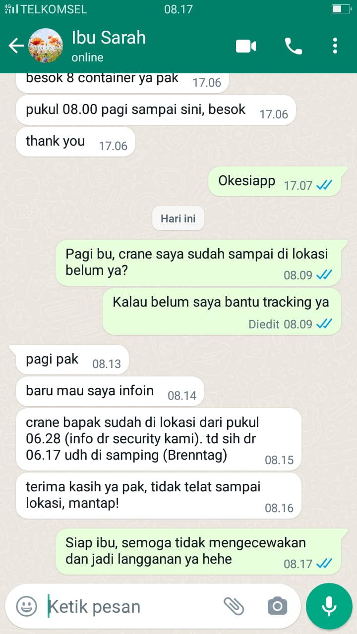 Telp atau whatsapp kami untuk menentukan lokasi tempat kerja atau proyek, menentukan unit yang akan di sewa dan harga